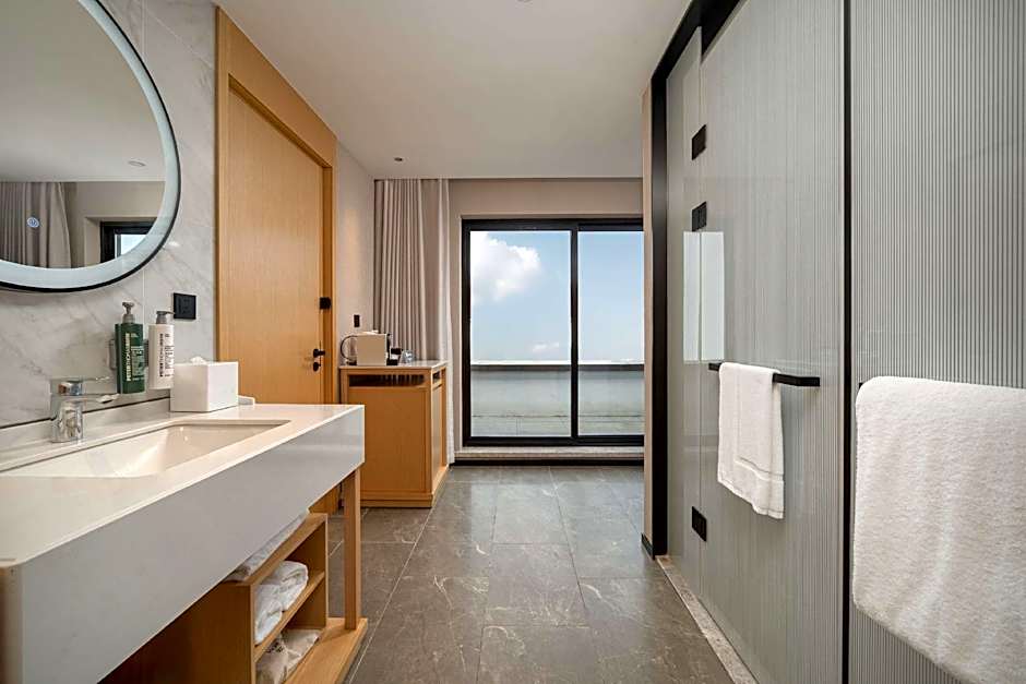 This suite has air conditioning, a safe deposit box and a flat-screen TV.